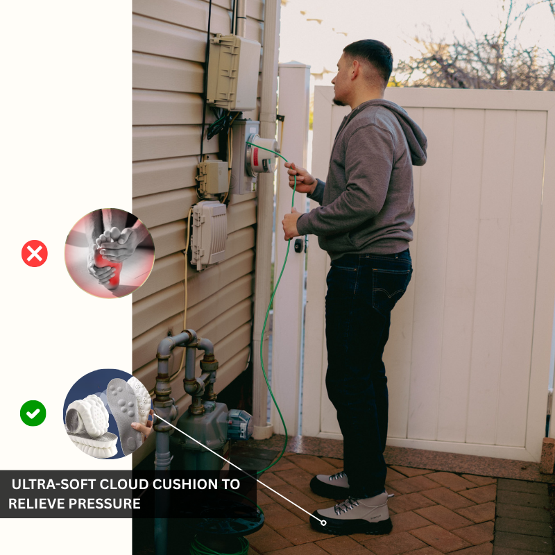 Our shoes are built with reinforced stitching, abrasion-resistant mesh, and a Kevlar midsole. They're made to handle concrete, mud, and harsh site conditions without falling apart.